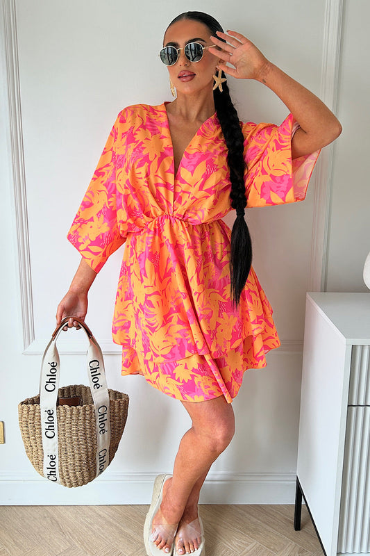 Lira | Orange & Pink Tropical Dress