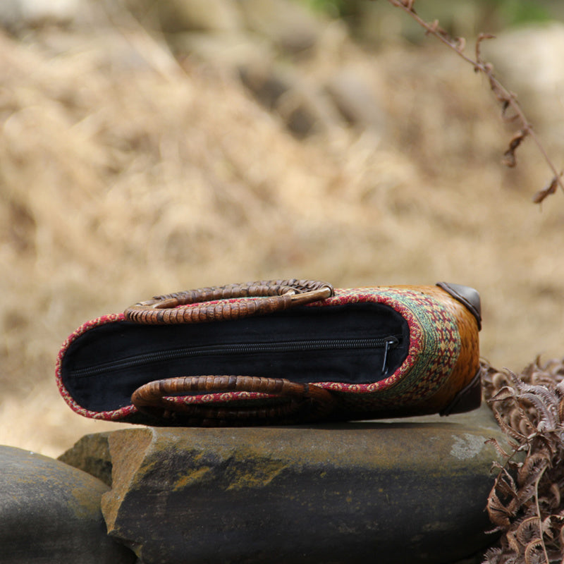 Discover the allure of the Bohemian Delight Woven Bag, a masterpiece handcrafted from bamboo straw and cotton.