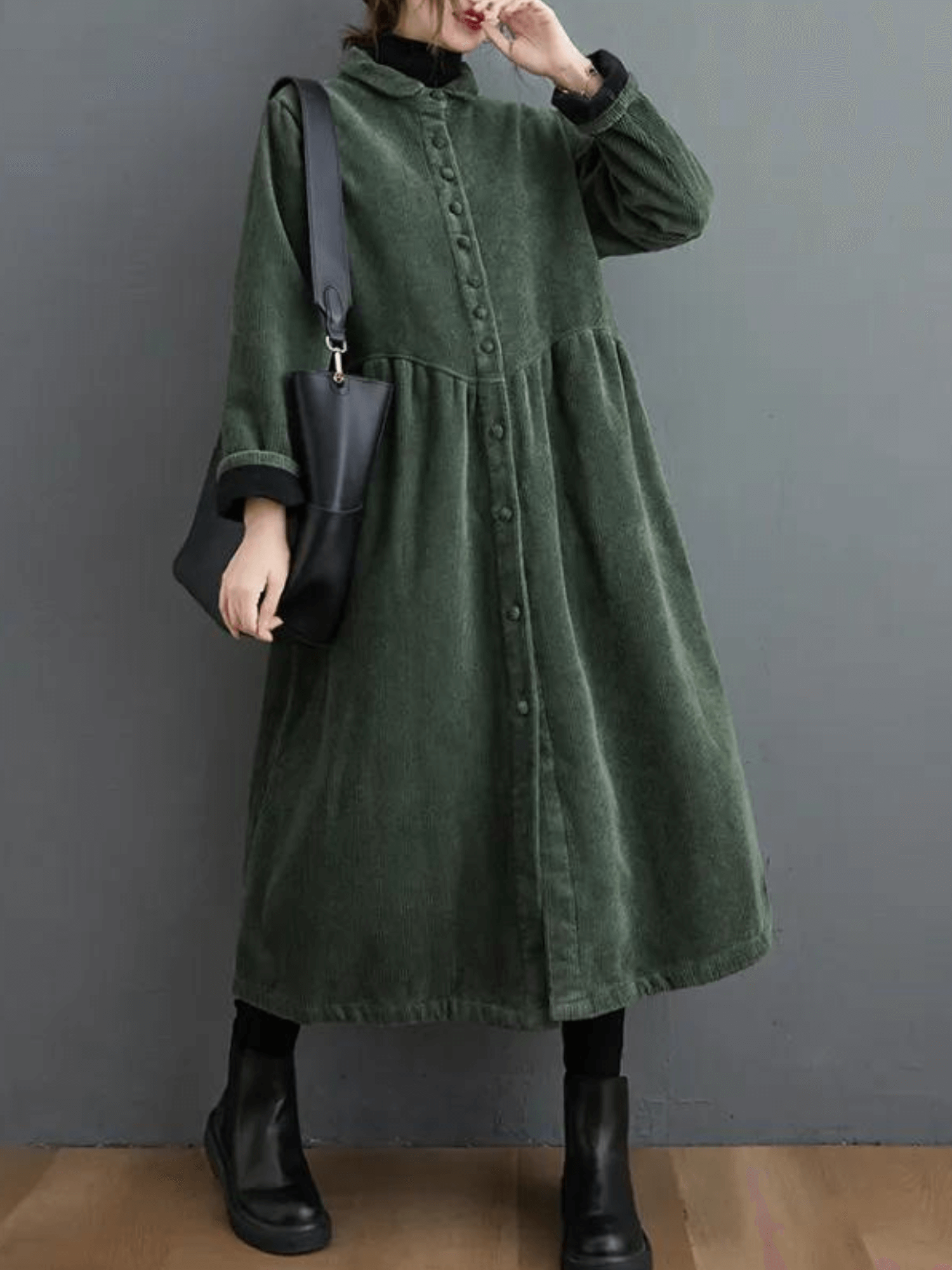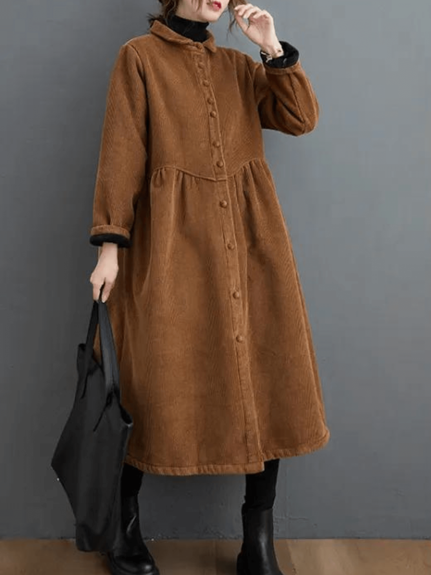 Embrace the winter season in style with our women's corduroy trench coat, the perfect combination of fashion and function. Designed to keep you warm and stylish, this trench coat is your essential winter companion. Its classic turn-down collar and flattering A-line silhouette add a touch of vintage charm to your wardrobe, making you instantly eye-catching.