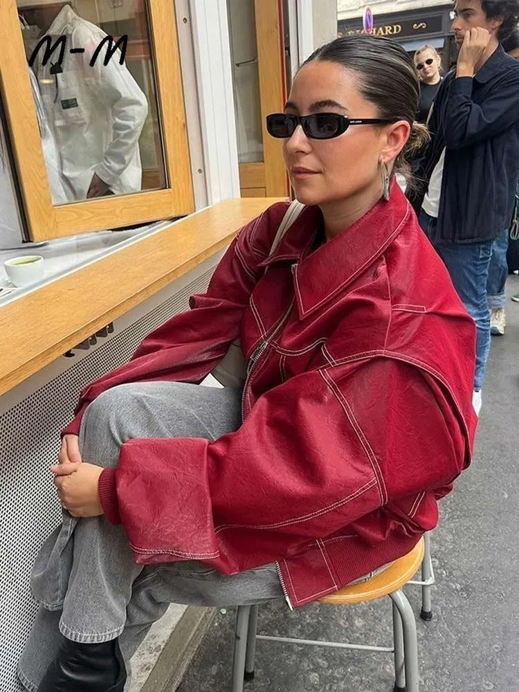 Enrich your wardrobe with our vibrant red jacket. From casual to elegant, this Oversized Contrast Stitch Jacket fits effortlessly into any occasion and lets you stand out with dynamic style.