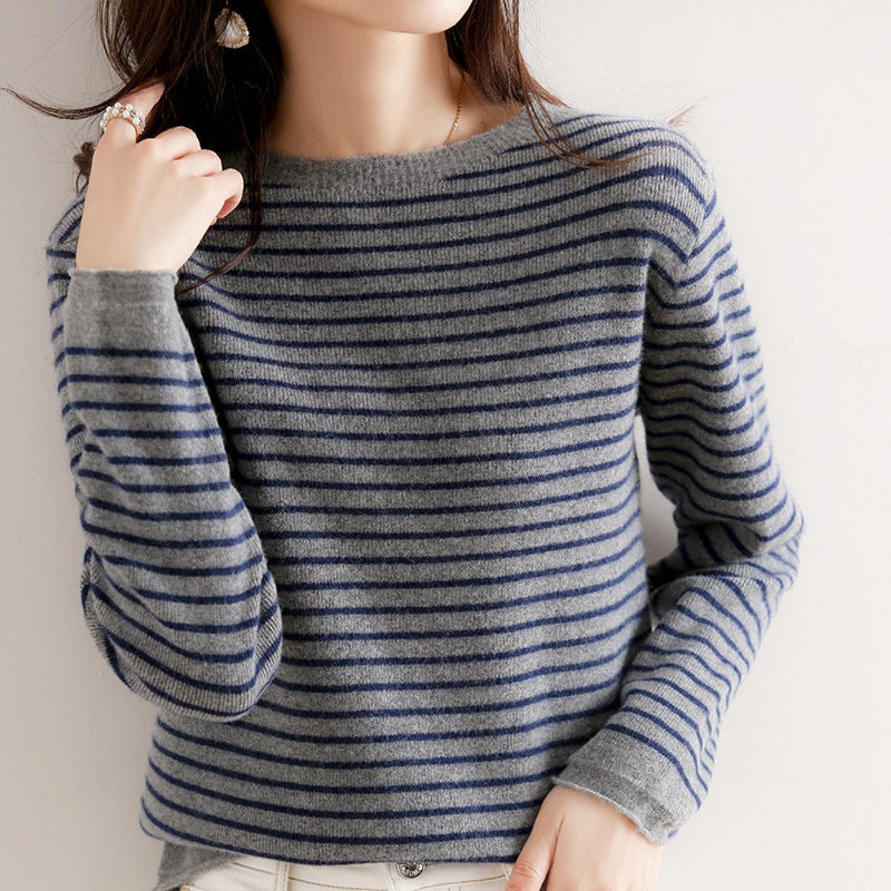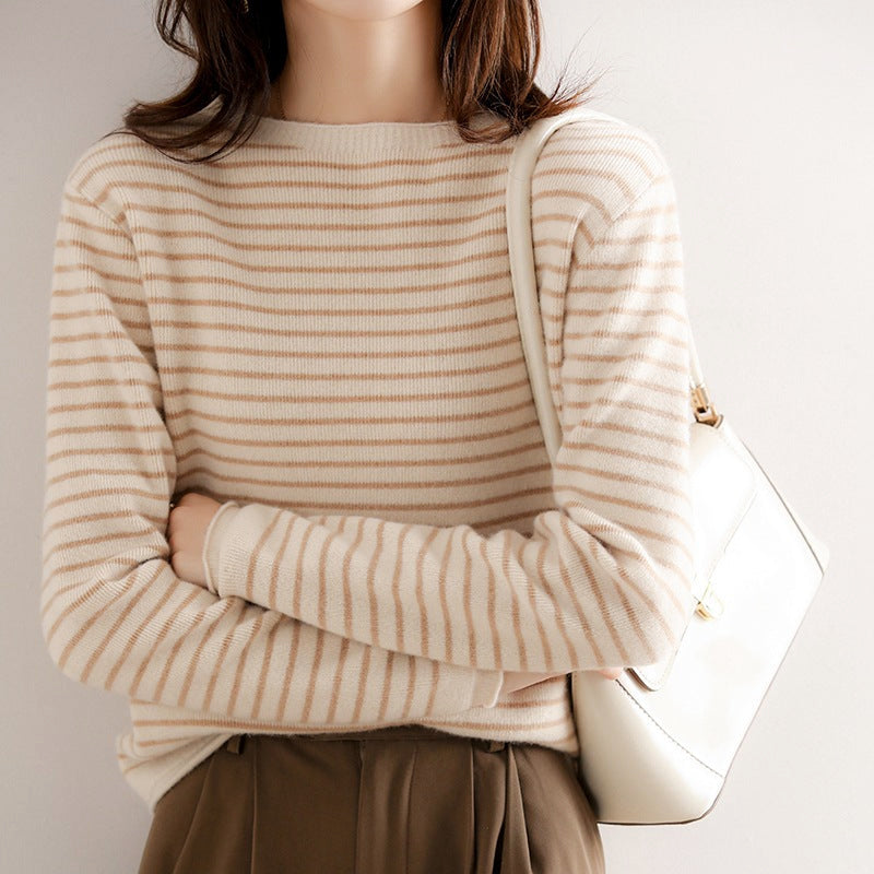 Indulge in the luxurious feel of our Amelie Everyday Striped Sweater, made from high-quality viscose that not only provides a soft touch against your skin but also ensures lightweight and breathable wear.
