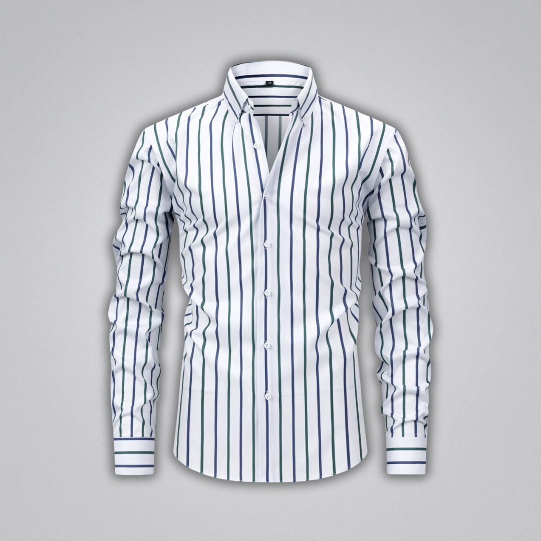 The Callum Striped Button-Up Shirt blends timeless style with a modern touch. Featuring clean vertical stripes for a sharp, elongating look, this shirt is perfect for both work and casual outings. Crafted from soft, breathable fabric, it offers all-day comfort without sacrificing sophistication.