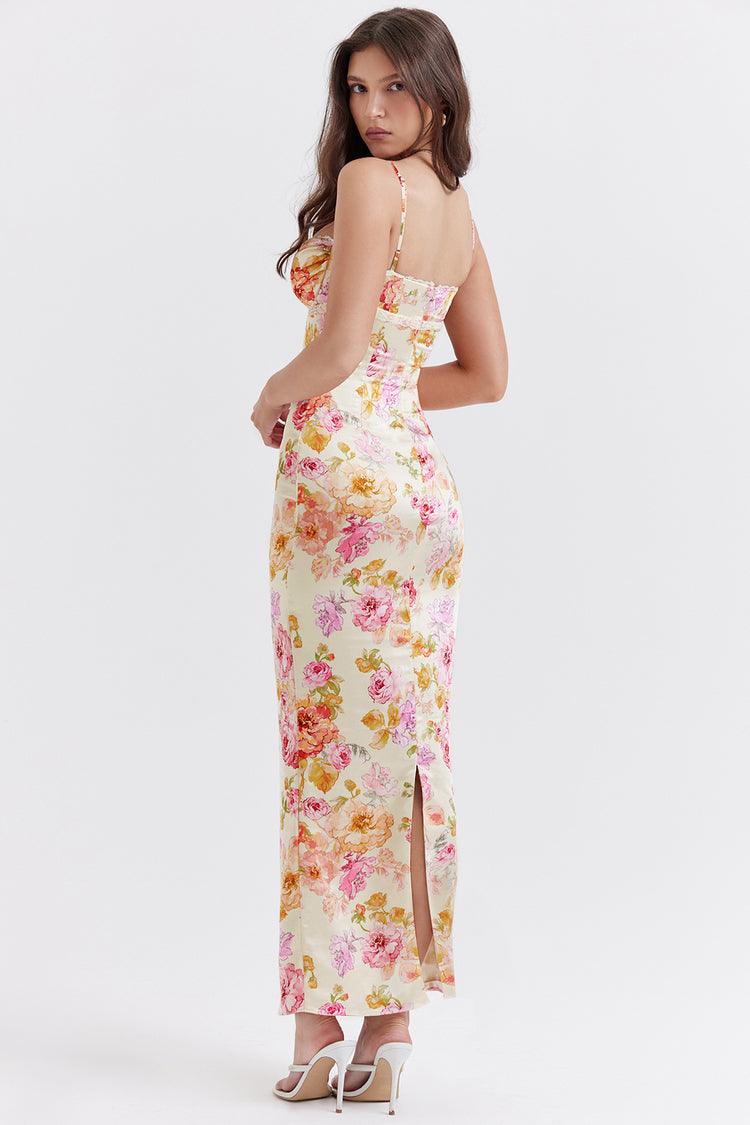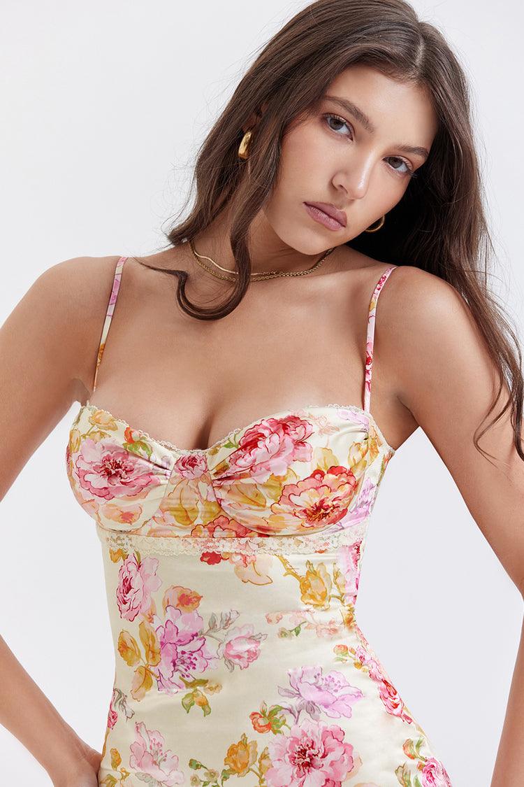 A blend of sexy elegance and summer charm. This mini dress features a slim, flattering silhouette adorned with delicate flower patterns, perfect for embodying effortless sophistication during the 2024 summer season.